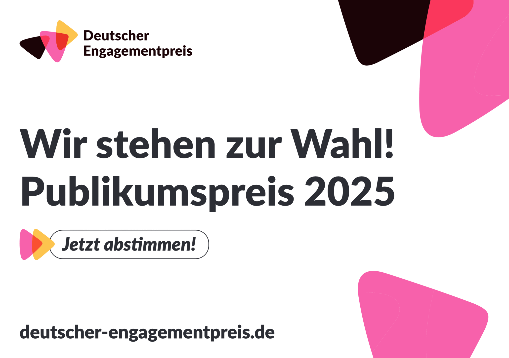 Unsere Nominierung für den Publikumspreis des Deutschen Engagementpreises freut uns riesig. Sie zeigt: Unser Engagement bleibt nicht unsichtbar. Jetzt haben wir die Möglichkeit, beim Publikumsvoting bundesweit noch mehr Menschen zu erreichen. Dafür brauchen wir deine Unterstützung.